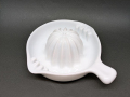 貝印のレモン絞り。果汁が無駄なく、軽くしぼれます。深い目立、山型フォルムで最後まで残さず絞れます。洗いやすく、匂いや色がつきにくい、セラミック製。底部にはシリコンのすべり止めが付いているので、安定して作業を行えます。深めの受け皿には種止めがついています。